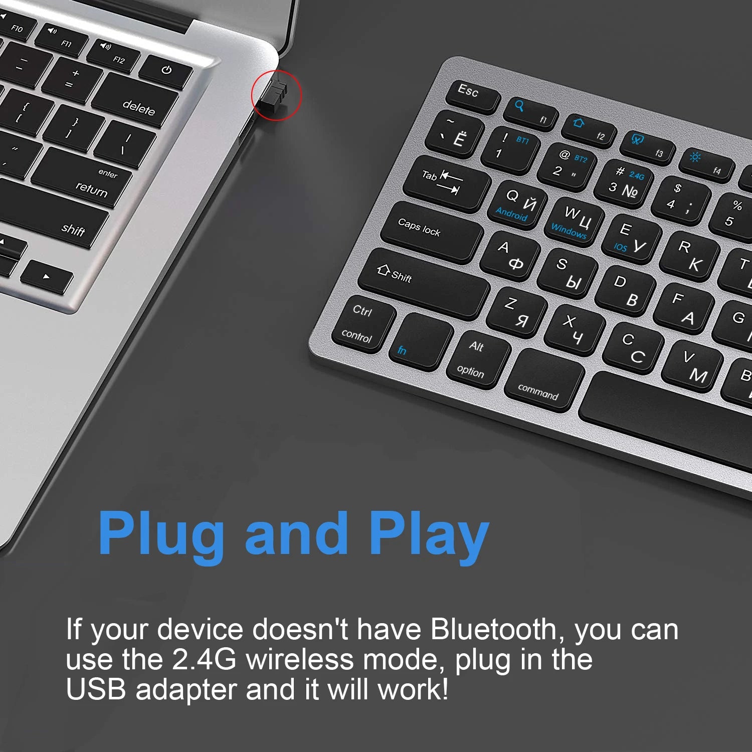 Russian English Layout Wireless Keyboard Bluetooth & 2.4G Dual Mode Keyboard Slim and Compact Ergonomic for Windows ios Android