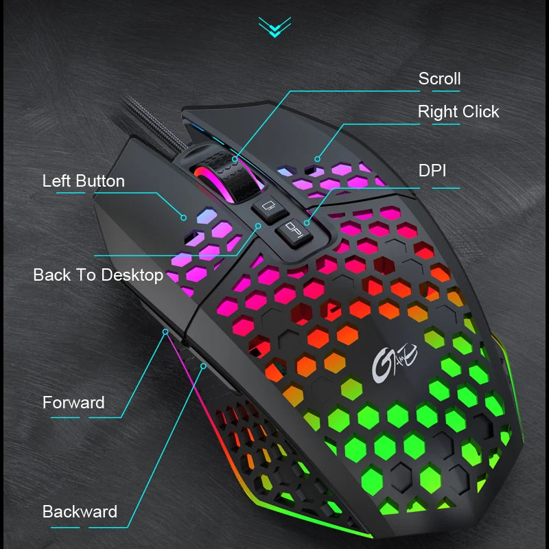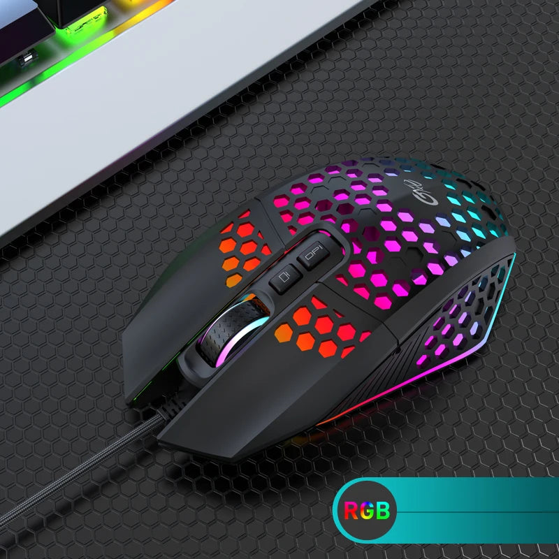 X801 Wired Gaming Mouse Design 7 Programmable Buttons Honeycomb Gaming Mouse RGB Backlit One-Click Desktop Gamer Mouse